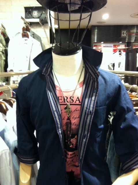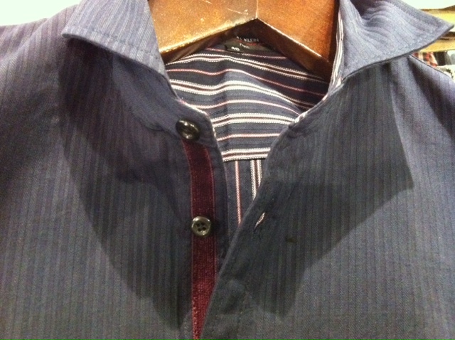 濃色ベースの七分袖シャツです。表地を
